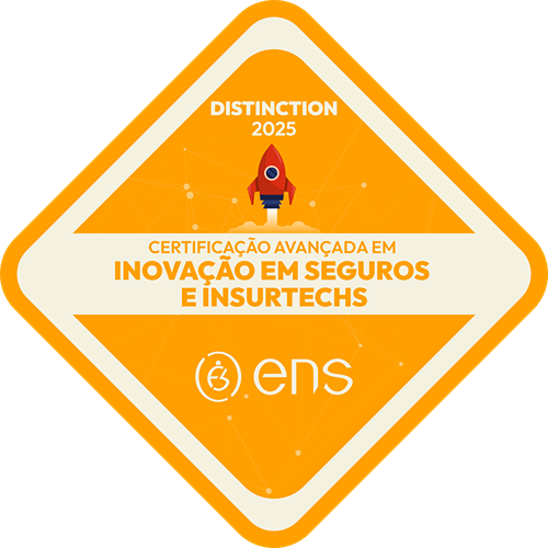 Ao concluir a Certificação Avançada: Inovação em Seguros e Insurtechs, você conquista mais do que conhecimento de ponta: recebe a Badge ENS Distinction, um selo digital exclusivo que comprova sua formação avançada e visão estratégica no ecossistema de inovação do setor segurador.